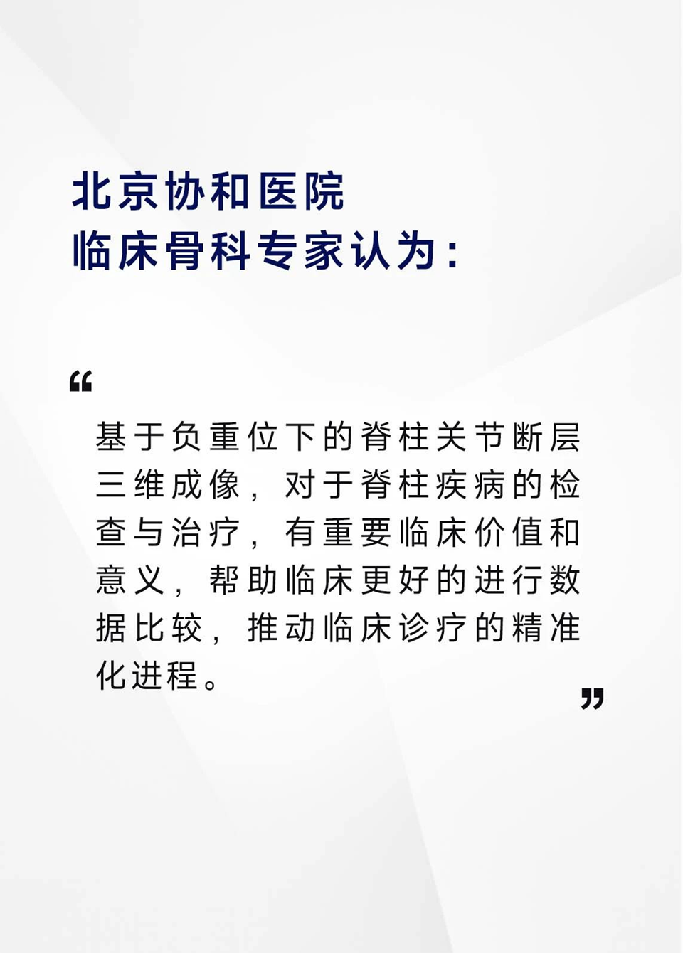入驻协和医院的WR-3D负重位锥束断层摄影系统,是目前全球首个基于航舱式的2D+3D一站式检查设备。利用锥束X光成像技术,WR-3D系统支持检查患者在站立位下完成三维扫描与三维重建。患者只需在站台上低速旋转一周,即可获得扫描部位的三维影像。WR-3D相对于立位平片,弥补了由于摆位和投照导致的组织重叠问题,而相对于卧位CT、MRI,则解决了无法真实反映患者在自然承重下的关节受力问题。不仅于此,WR-3D还是一款超低剂量的三维扫描与重建系统,剂量仅相当于常规MSCT的10%-20%,方便患者随诊观察。