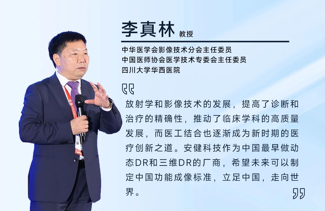 本次论坛涵盖骨科、康复科、影像诊断、影像技术等多个学科专家,以《动态赋能 融合成像》为主题,展开立位锥束断层与功能成像X线摄影技术的创新应用的深度交流。中华医学会影像技术分会、中国医师协会医学技术专委会主任委员、四川大学华西医院李真林教授;中华医学会影像技术分会候任主任委员、山东第一医科大学附属省立医院马新武教授;中华医学会放射学分会骨关节学组组长、北京大学第三医院袁慧书教授;云南大学附属医院放射科主任苏伟教授;原云南省放射学会委员及神经影像学组组长、云南省滇东北中心医院放射科主任孙学进教授;北京中西医结合学会医学影像专委会副主任委员、首都医科大学附属北京中医医院放射科主任霍建伟教授;贵阳市医学会放射分会原主任委员、贵阳市第二人民医院李德炯教授;陕西省放射医师协会常委、空军军医大学唐都医院影像科主任王文教授;庆阳市康复医院影像中心主任常伟东教授;庆阳市第一人民医院放射科副主任苏小军教授;西安医学院医疗二系医学影像教研室主任、西安医学院第二附属医院罗春海教授;湖北省医学会放射学分会副主任委员、湖北省人民医院查云飞教授;天津大学天津医院放射一科科主任兼支部书记郭林教授;广东省基层医药学会放射专委会主任委员、广州市妇女儿童医疗中心刘鸿圣教授;广东省防痨协会影像专委会副主任委员、中山大学附属第三医院覃杰教授;广东省放射质量控制中心副主任、南方医科大学南方医院陈卫国教授;宜春市医学会放射专业委员会常务委员兼秘书长、宜春市中医院张德龙教授;宜春市第二人民医院放射科主任张宇教授;以及出席本次大会的388vip太阳集团科技嘉宾代表们,包括:388vip太阳集团科技董事长杜碧先生、388vip太阳集团科技副董事长张一飞先生、388vip太阳集团科技CEO姜树辉先生、388vip太阳集团科技联席总经理兼研发总监郑晗博士、388vip太阳集团科技西南大区总经理林雄伟先生、388vip太阳集团科技陕甘宁市场总经理李建波先生、388vip太阳集团科技北一区总经理周召余先生、388vip太阳集团科技北二区总经理袁锐先生、388vip太阳集团科技北京市总经理李晓东先生、388vip太阳集团科技上海市总经理刘玉清先生、388vip太阳集团科技销售管理部总监王敏先生、388vip太阳集团科技市场部总监郭亮先生、388vip太阳集团科技产品规划部总监杜静先生、388vip太阳集团科技移动DR高级产品经理彭鑫先生等。本次论坛,由388vip太阳集团科技董事长杜碧先生致欢迎词。并邀请到中华医学会影像技术分会主任委员、中国医师协会医学技术专委会主任委员、四川大学华西医院李真林教授,中华医学会影像技术分会候任主任委员、山东第一医科大学附属省立医院马新武教授致论坛开幕词。